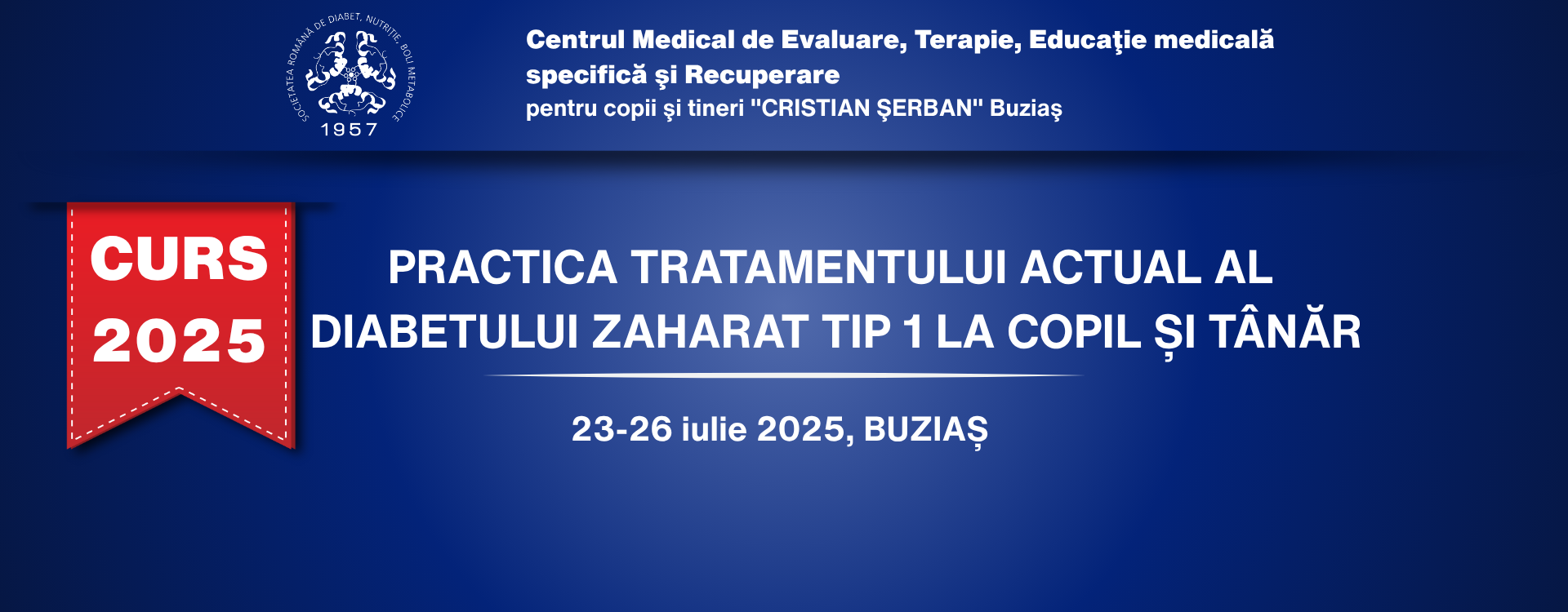Organizează, în anul 2025, la Centrul Medical „Cristian Șerban” Buziaș, Stagiul de perfecționare „Practica tratamentului actual al diabetului zaharat de tip 1 la copil și tânăr”, cu durata de 4 zile.